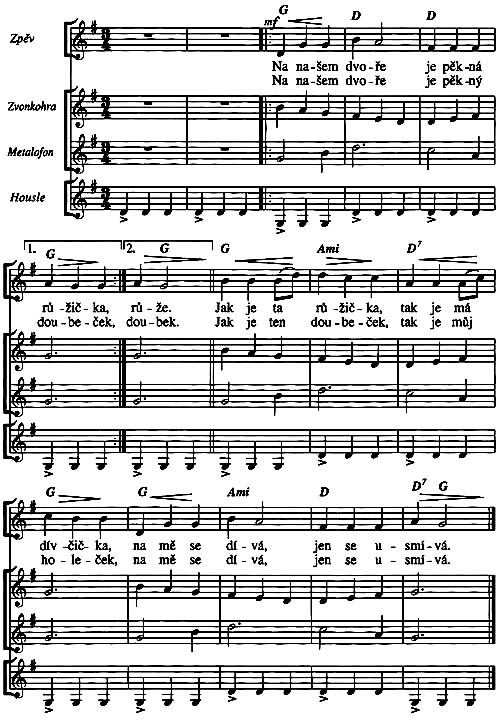 - příprava nebo příprava - - - Vyletěla holubička - - - Muzikant - - - Chorální předehra -